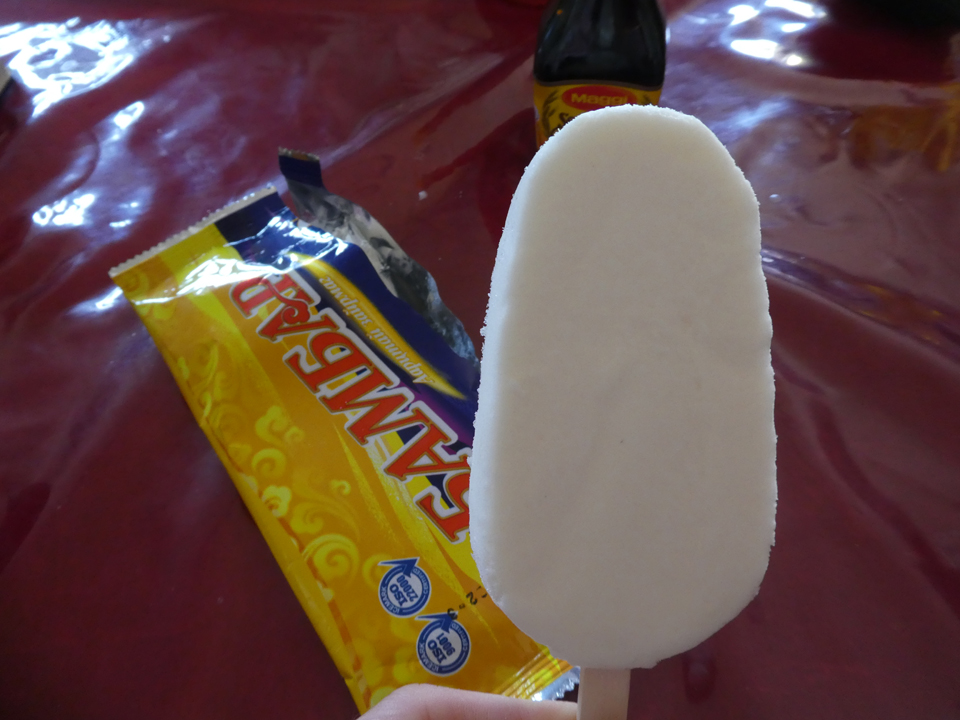 In Butlan legen wir Mittagsrast ein. Das Restaurant ist schlicht, bestehend aus ein paar Tischen, einer Theke und einer Kochecke. In der Hitze sehr willkommen ist die Quark-Glacé mit der uns Zolzaya zum Dessert überrascht 🙂