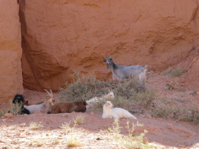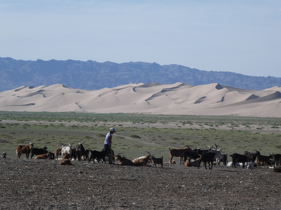 Die Nomadenfamilien stehen mit der Sonne auf und erledigen viele der Arbeiten während den angenehmen Temperaturen. An diesem Morgen konnten wir beobachten, wir Nachbarn vorbeikamen und Ziegen aussuchten. Mit Hilfe eines Gatters liessen sich die Ziegen (nicht ohne Fluchtversuch) einfangen. Transportieren geht dann ganz einfach: 1 Motorrad, 2 Leute und eine meckernde Ziege.