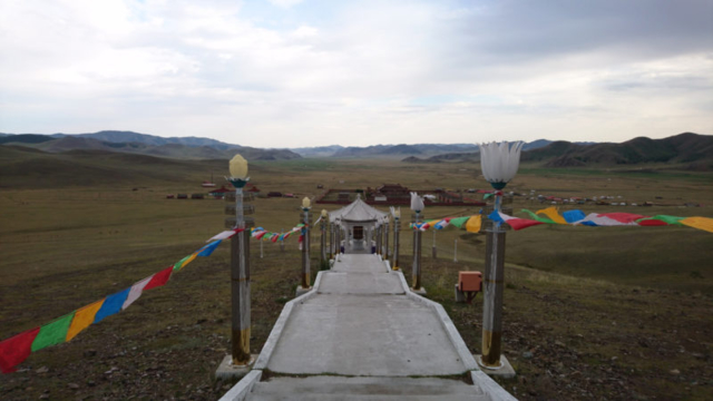 Den 1. Tag verbrachten wir fast nur im Van. Der Norden ist im Vergleich zur Gobi sehr grün. Allerdings nicht so grün, wie er sein sollte, denn es hat seit längerem nicht geregnet, was für dieses Gebiet eher ungewöhnlich ist. Die Strasse war fast die ganze Zeit geteert, ausser die letzten 30 km zum Kloster Amarbayasgalant. Viele Touristen lassen dieses Kloster aus, da der Weg lang und holprig ist. Da die Mongolei, aufgrund ihrer nomadischen Tradition, aber kaum über sehenswerte historische Gebäude verfügt lohnt sich der Weg dennoch.