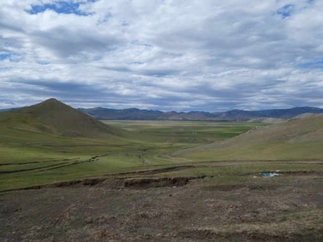 La route qui mène de Tsetserleg aux sources de Tsenkher nous transporte peu à peu de plaines arides à des paysages verdoyants, où, après avoir franchis plusieurs collines, nous finissons par apercevoir les sources presque bouillonnantes.