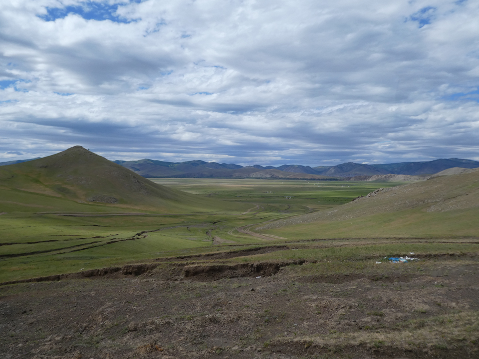 Après une nuit pluvieuse, nous quittons le lac en direction du sud sur une piste boueuse et accidentée. Nous rejoignons peu après la ville de Khorgo et la piste goudronnée et faisons un stop un peu plus loin au bord du canyon de la rivière Chuluut.