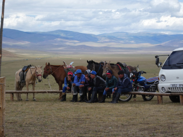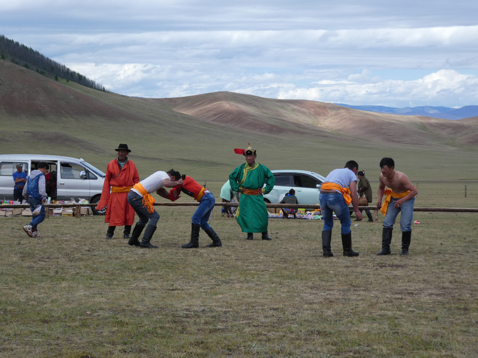 Peut avant d’arriver à Tsetserleg, capitale de la province d’Arkhangai, nous apercevons un Naadam régional, auquel nous nous invitons.
