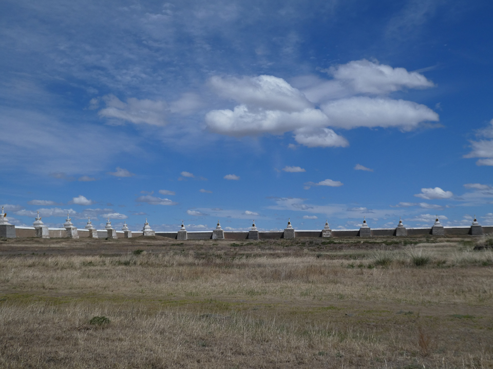 Le monastère d’Erdene Zuu est construit en 1585 juste à l’extérieur de l’enceinte des ruines de Karakorum, après l’introduction du bouddhisme en Mongolie comme religion d’État. Les pierres des ruines de Karakorum ont été utilisées dans l’édification du monastère, de ses 108 stupas constituant son enceinte et des 62 temples que comprenait le monastère durant son âge d’or.