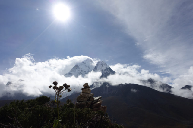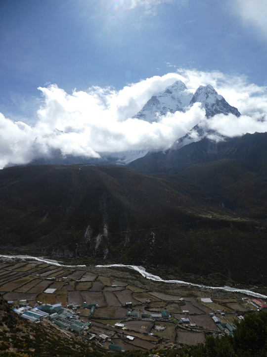 Aujourd’hui est un nouveau jour d’acclimatation à l’altitude. Au programme, une courte marche sur l’arrête de la montagne au dessus de Dingboche, faisant face à la majestueuse Ama Dablam, “Mother and daughter” (6812 m).
