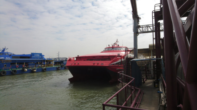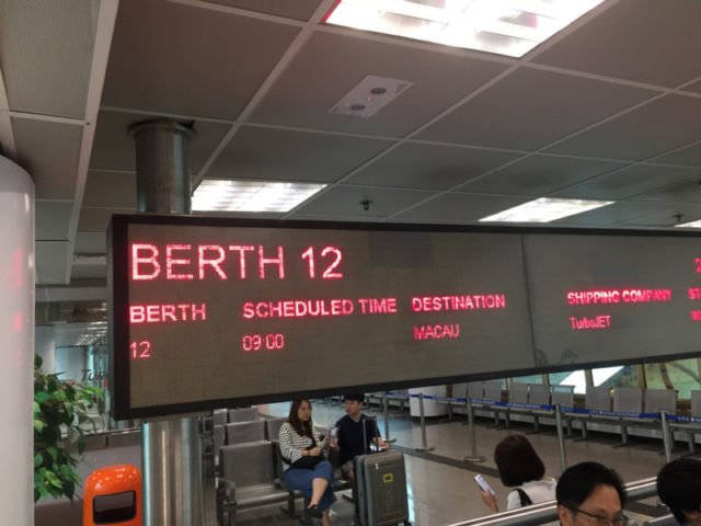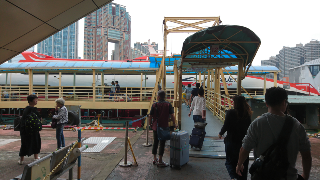 Wie auf dem Flughafen geht es hier am Fähren Terminal in Hong Kong zu und her. Sicherheitskontrolle, Check-in, Boarding, Sitznummern und separater Gepäckverstau. Alles klappt super – jedenfalls solange ich, während der doch eher stark schaukelnden Überfahrt, den Horizont fixieren kann. 😉
