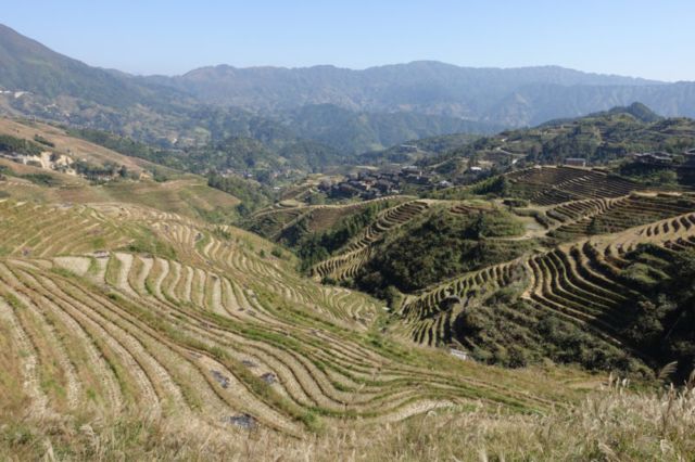 Difficile de passer à Guilin sans une visite aux terrasses de riz de Longsheng, même si ce n’est pas la saison la plus spectaculaire pour les visiter, le riz venant d’être récolté.