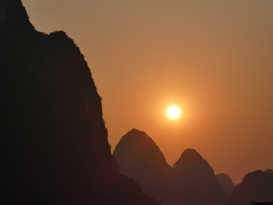 Die letzten Tage in China verbringen wir in Yangshuo. Die Stadt ist sehr beliebt bei Touristen sowohl aus China wie auch aus allen anderen Teilen der Welt. Sogar einer Reisegruppe von Schweizern laufen wir über den Weg. Uns gibt Yangshuo die Gelegenheit, die gemütlichen Cafes und Restaurants auszuprobieren, dem Yulong Fluss entlangzuradeln, aber auch wieder mal unsere Wäsche in einer richtigen Waschmaschine zu waschen 😉
