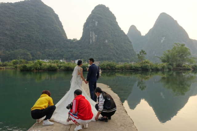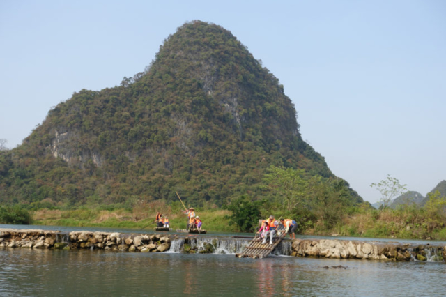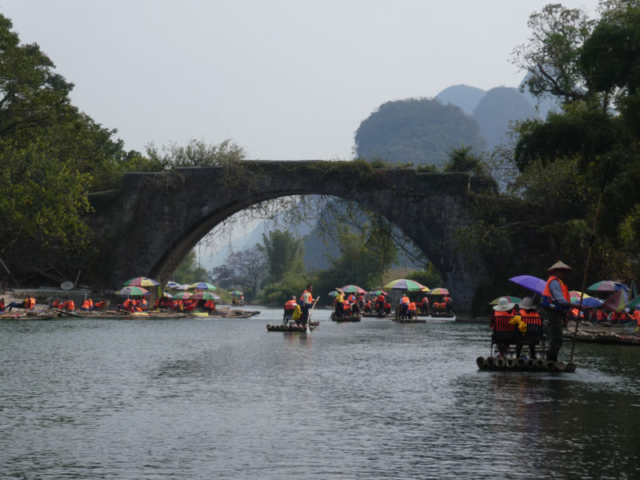 The Yulong River, known as ‘the Little Li River’, is a tributary of the Li River. Unlike the busy Li River, it has no motorized boat traffic and relies completely on bamboo rafts to ferry passengers downriver. In combination with a bicycle trip it is a perfect activity in this beautiful landscapes.