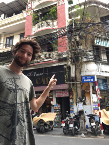 Nicht nur auf den Strassen herrscht ein organisiertes Chaos auch die elektrischen Leitungen erinnern an Geduldspiele. Pascal hatte sich beim letzten Besuch in Hanoi ein entsprechendes T-Shirt gekauft 🙂