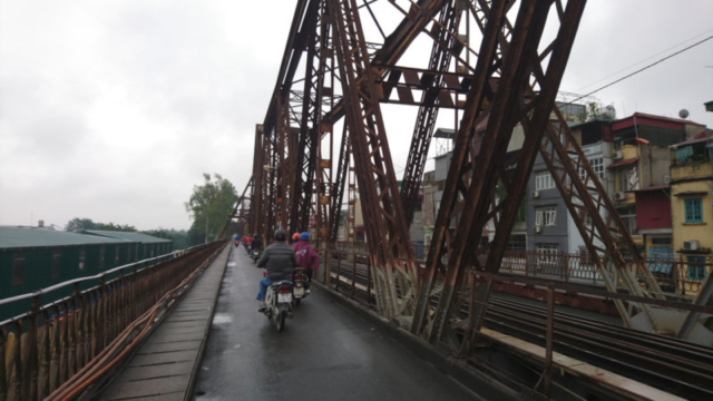 Unweit von der Altstadt befindet sich die Long Bien-Brücke, die über dem Roten Fluss führt. Sie wurde 1898 während der Kolonialherrschaft der Franzosen gebaut und wurde von Gustave Eiffel entworfen. Die fast zwei Kilometer lange Brücke war damals die längste Brücke in Indochina. Nach 20 Jahren wurde die Brücke auf beiden Seiten um je drei Meter ausgebaut. Davon zwei Meter für den Personalverkehr und ein Meter für die Fussgänger. Auch Wagen, die von Nutztieren gezogen wurden, waren zugelassen.