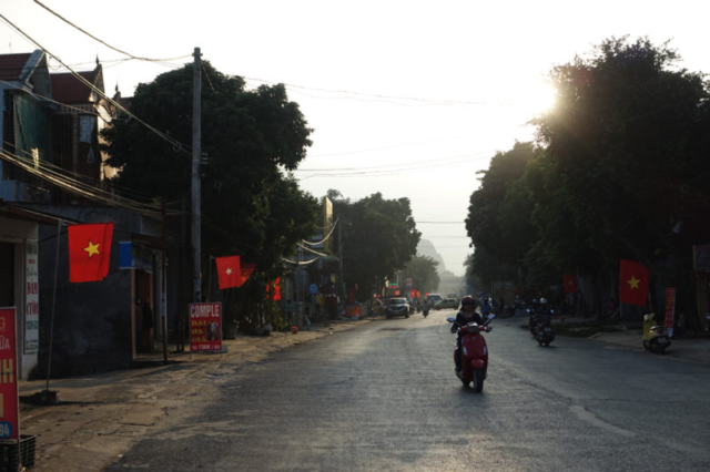 Dans la ville, on retrouve le drapeau vietnamien, que l’on a vu partout durant la journée au bord des routes.