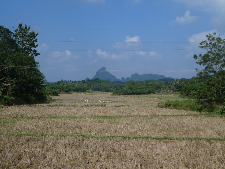 Les paysages s’alternent entre forêts, rivières, rizières récemment récoltées et traversée de villages.