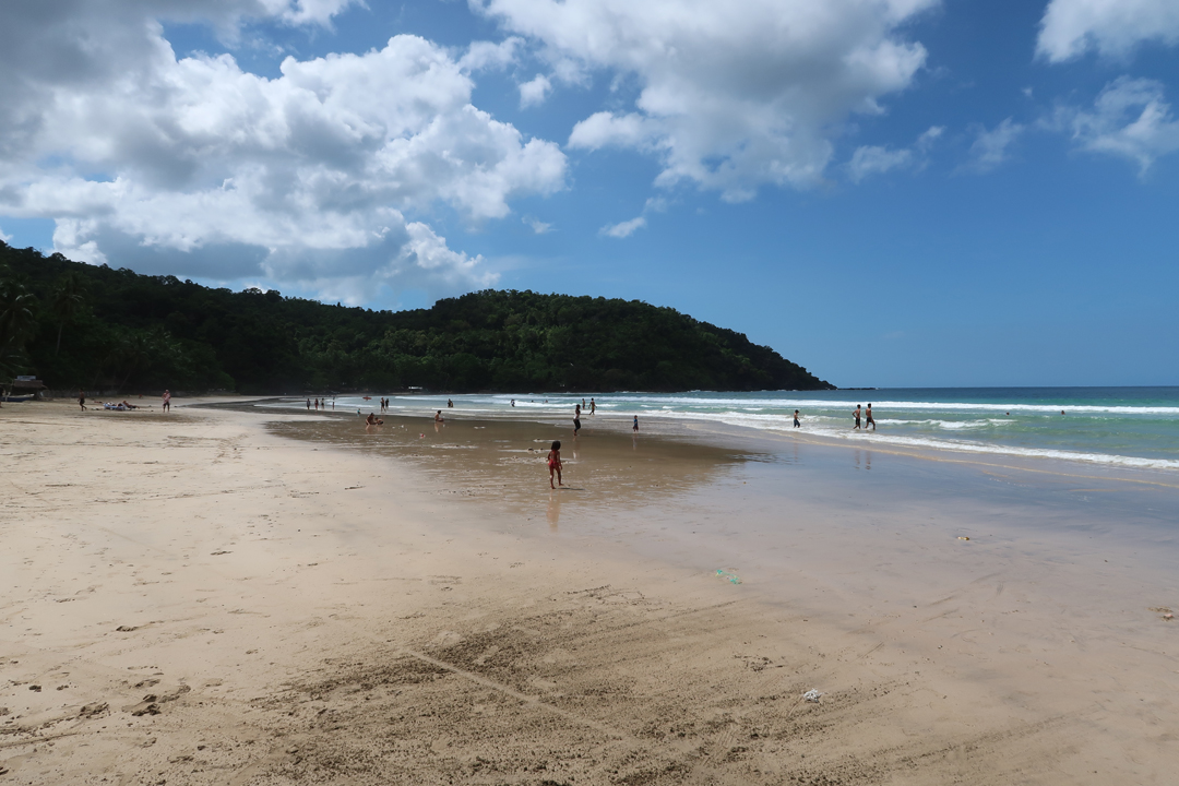 Nous découvrons la large plage qui s’étend sur un peu plus d’un km. On trouve quelques cottages à l’entrée de la plage dont certains abritant barbecues ou autres échoppes vendant quelques boissons ou fruit. Sur la plage, pas d’électricité ni de réseau, l’ambiance est relax ! Parfait pour se détendre quelques heures!