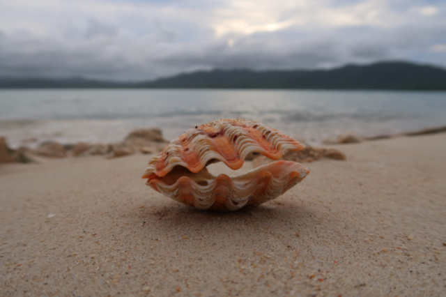 Une fois l’ancre jetée à quelques dizaines de mètres du bord, nous rejoignons le rivage à snorkeling. Sur le chemin, nous découvrons la vieille épave qui gît à fleur de surface à quelques mètres seulement de la plage. Cependant, l’eau aujourd’hui n’est pas aussi clair que les jours précédents, sûrement dû à la tempête de la dernière nuit qui a pas mal brassé la mer, et nous ne voyons pas grand chose dans l’eau.