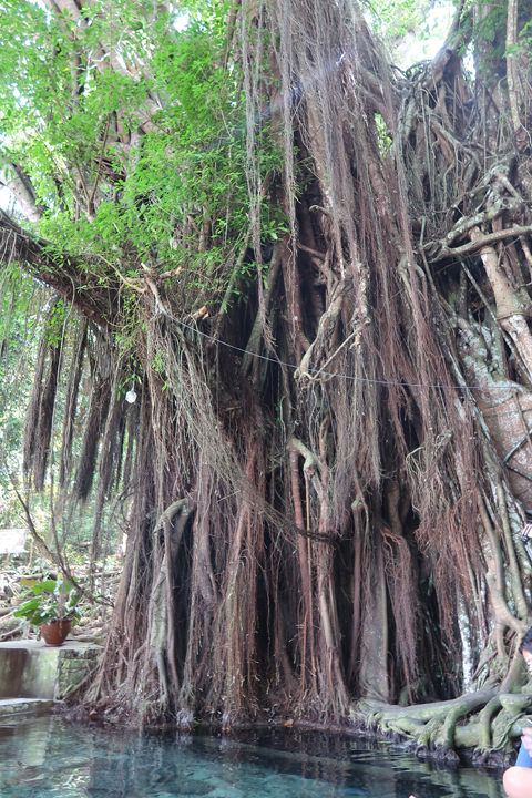 Nous visitons le plus vielle arbre de l’île qui aurait plus de 400 ans. C’est un “balate tree“, terme qui regroupe plusieurs espèces d’arbres aux Philippines, qui ont la particularité de démarrer d’abord comme plantes épiphytes, puis laissent pendre leurs racines jusqu’à toucher le sol, pour, ultimement, encercler et suffoquer l’arbre hôte.