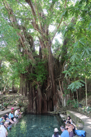 Nous visitons le plus vielle arbre de l’île qui aurait plus de 400 ans. C’est un “balate tree“, terme qui regroupe plusieurs espèces d’arbres aux Philippines, qui ont la particularité de démarrer d’abord comme plantes épiphytes, puis laissent pendre leurs racines jusqu’à toucher le sol, pour, ultimement, encercler et suffoquer l’arbre hôte.