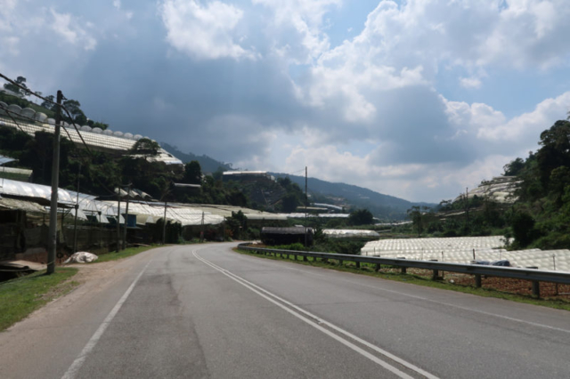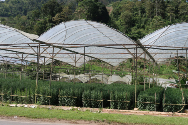 Bientôt nous entrons dans le district des hauts plateaux de Cameron, les “Cameron highlands” et ne tardons pas à découvrir ses innombrables serres qui s’étendent à perte de vue dans le paysage.