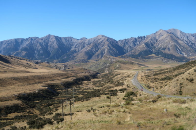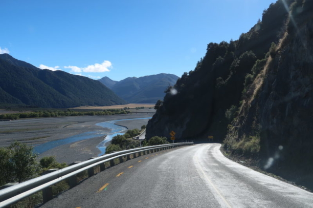 Après cet arrêt rafraîchissant, nous continuons sur la nationale 73 jusqu’à la côte Est avant de remonter en direction de Kaikoura.