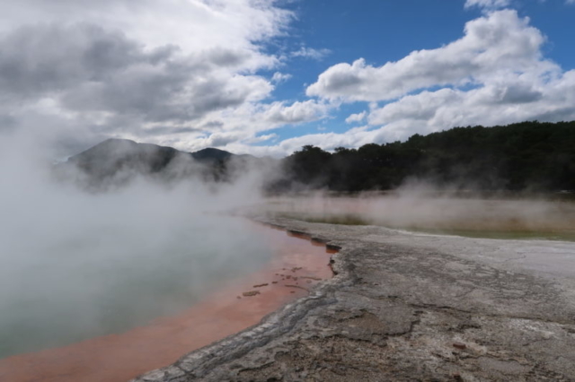 La “Champagne Pool” est une vrai curiosité. Son nom lui provient de ses émanations de CO2 qui bouillonnent comme dans un immense verre de champagne.
