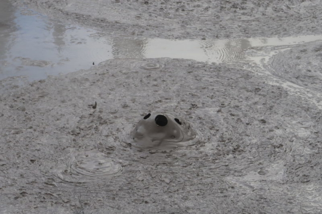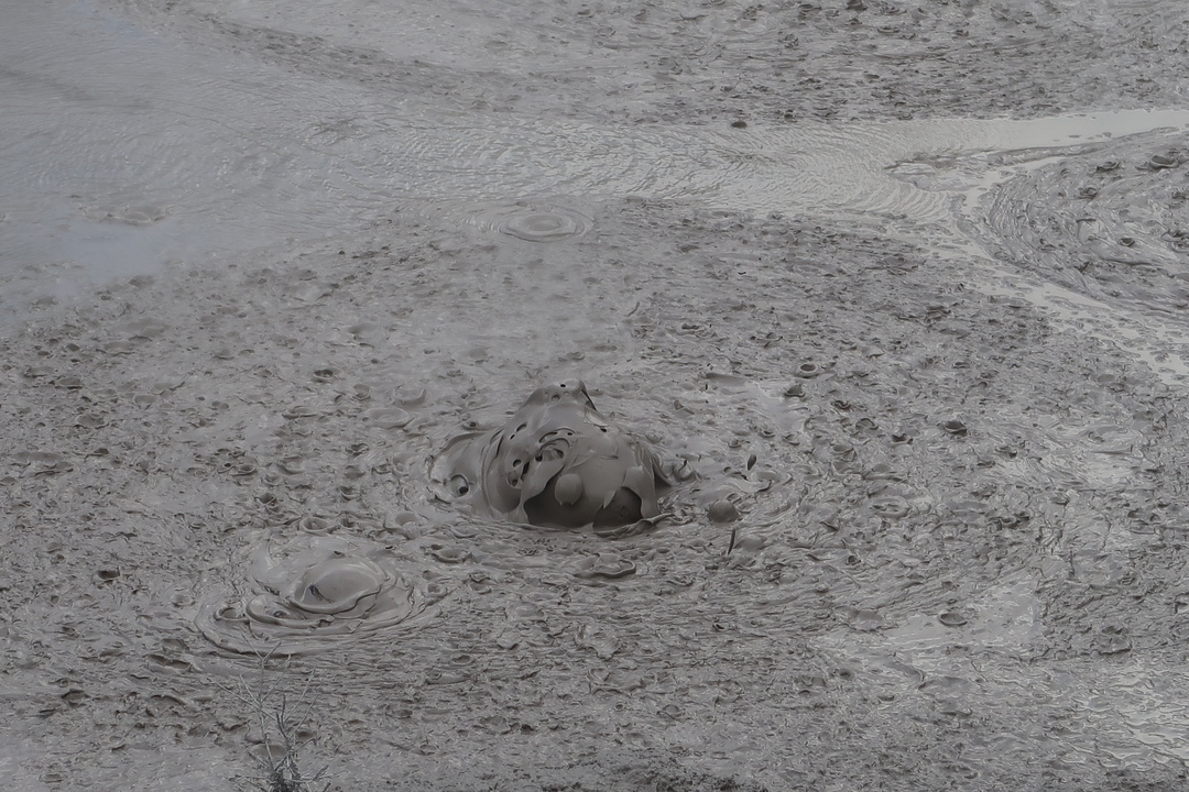 Quelques km plus en amont du parc, on fait un dernier arrêt aux mares de boue bouillonnantes, avant de poursuivre en direction du nord.
