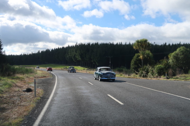 Sur la route, nous croisons une caravane d’une cinquantaine de “Old Timers”. Nous avons été surpris de découvrir en Nouvelle Zélande un grand nombre de passionnés et on croise relativement souvent de beaux engins parfaitement lustrés sur la route.