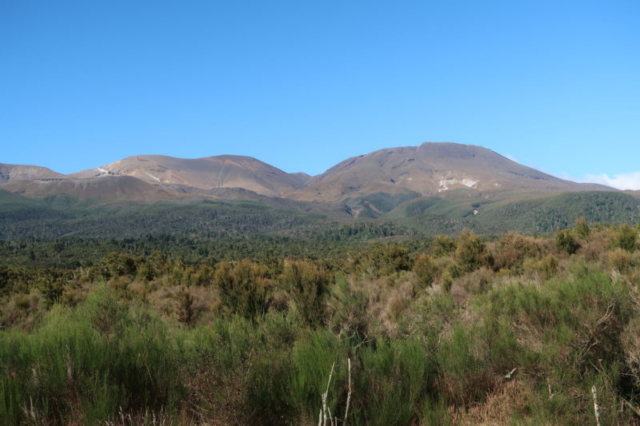 En quittant le parc national du Tongariro ce matin, nous apercevons depuis la route le plateau volcanique que nous avons traversé la veille.