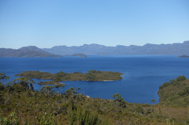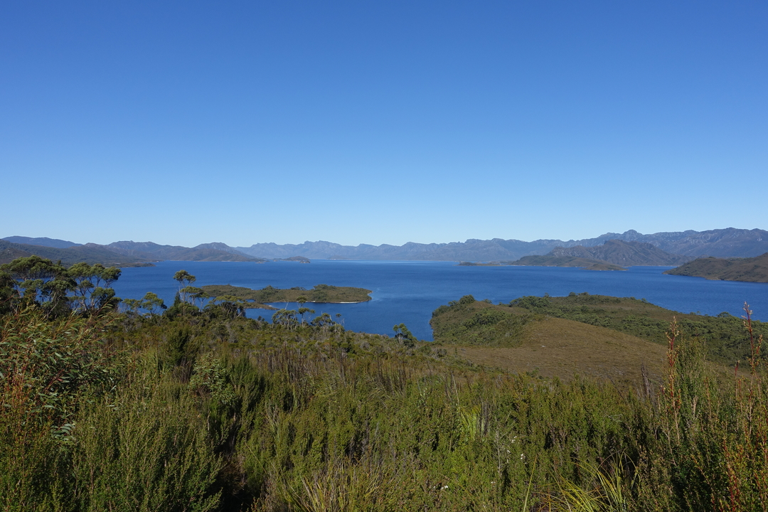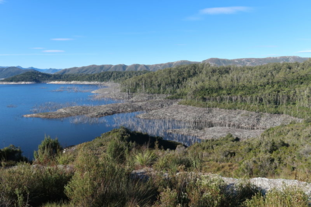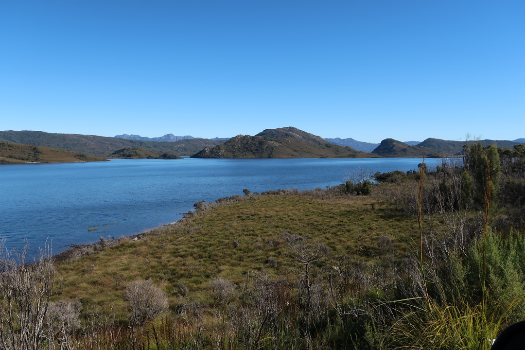 100 km plus loin, nous arrivons au lac-réservoir de Pedder, d’une superficie de 242 km2.