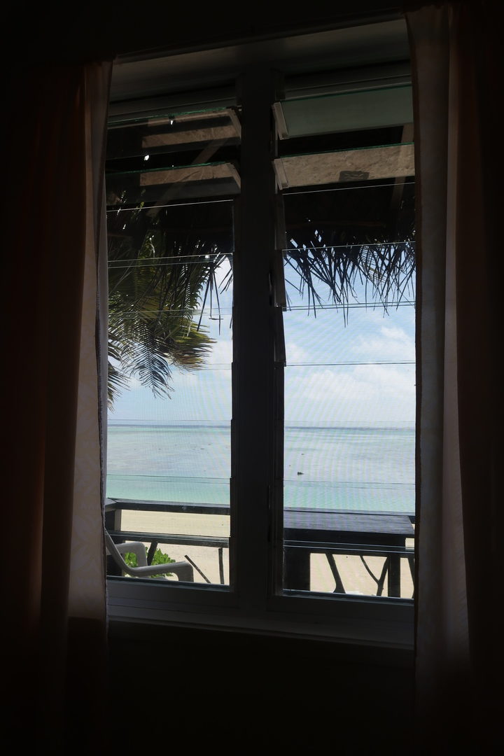 Notre hôtel fait face à l’océan sur le côté Est de l’archipel et la vue depuis le bungalow est plutôt sympa!