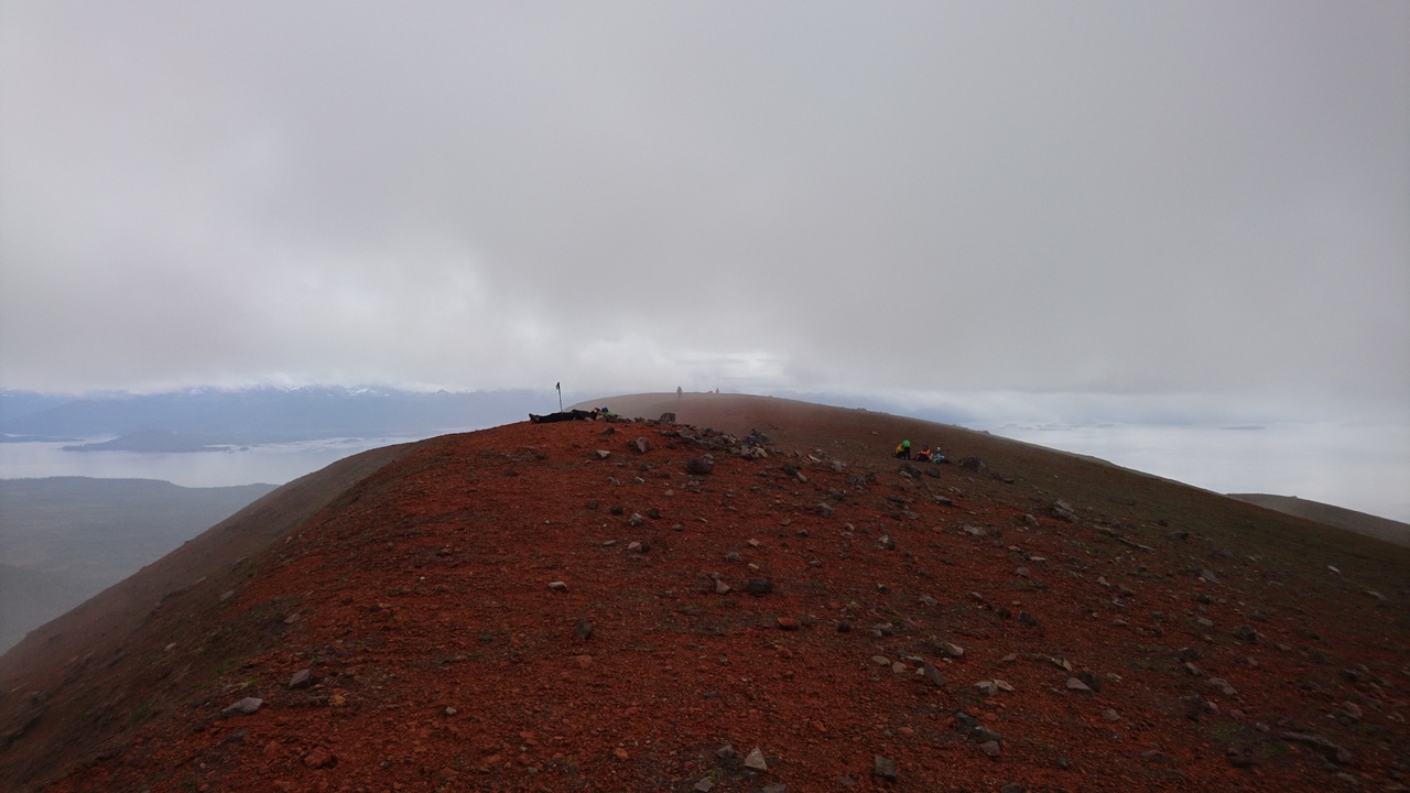 Nous trouvons un coin à l’abris du vent où nous faisons fondre la neige avec notre réchaud pour un peu de thé bienvenu ! Au sommet nous sommes rejoint par un groupe du « Trailwork », une association de Sitka qui organise régulièrement des marches dans les environs de Sitka. Le groupe a quitter Sitka au petit matin. Nous retrouvons Ryan, le fils de Peter qui jouait avec Kath dans « Fishing for Cats », 15 ans plus tôt.