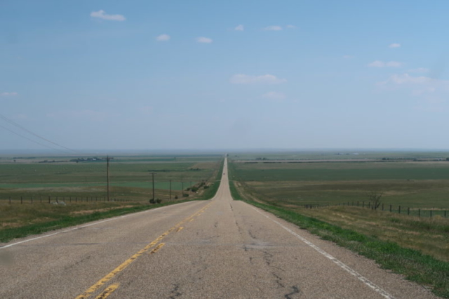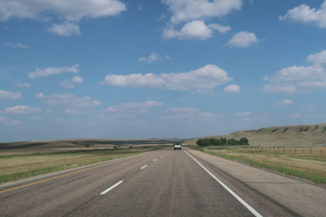 Parfois quelques collines mais toujours tout droit! 🙂 En milieu d’après-midi, on quitte l’Alberta pour entrer dans la province du Saskatchewan.