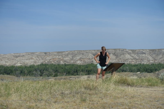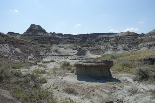 Nous quittons le campground de Brooks de bon matin pour filer en direction du nord pour le “Dinosaur Provincial Park”. À l’approche du parc, c’est sûr, on est sur la bonne route ! 🙂