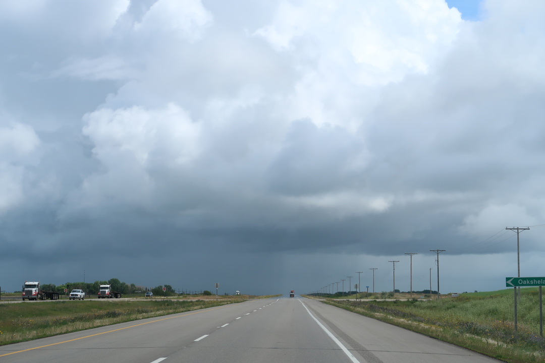 Nous quittons le joli parc provincial de Buffalo Pound et reprenons la route sur la transcanadienne. Le temps se transforme devant nous et nous prenons quelques jolies rincées à l’approche de Regina, la capitale du Saskatchewan.