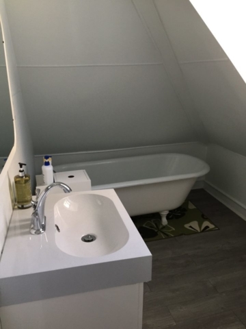 Für die Tage in Winnipeg haben wir eine kleine Dachwohnung für uns, sogar mit Küche und eigenem Bad. So viel Platz sind wir uns gar nicht gewohnt. Nur die Badewanne in der Dachschräge lässt uns etwas wundern… aufrecht Duschen lässt sich darin jedenfalls nicht 😉