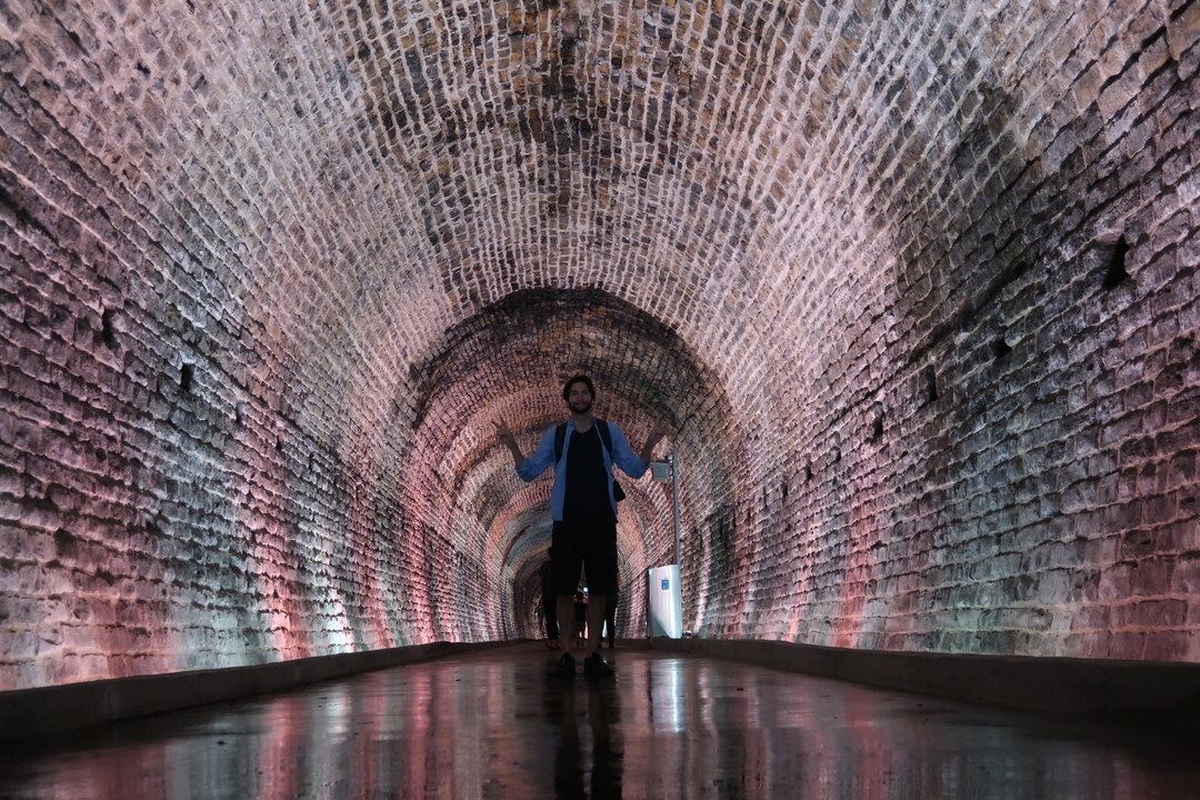 Nach der hübschen Bootsfahrt geht es weiter dem ST. Lorenz-Strom entlang. Wir kommen an Brockville vorbei, wo es den ersten Eisenbahntunnel Kanadas zu sehen gibt. Sein Bau begann 1854 und wurde 1860 für den Eisenbahnverkehr freigegeben. Bis 1966 wurde er noch mit Diesellokomotiven befahren, seither ist er jedoch stillgelegt und für Besucher zugänglich. Der Tunnel is 527 m lang und mit Lichtspielen beleuchtet. Informationstafeln erzählen Geschichten zu seiner Erbauung und seinem Betrieb.