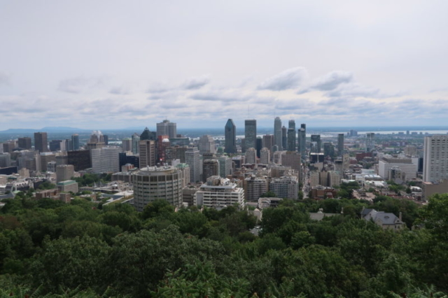 Pour notre deuxième jour à Montréal, le temps est plus clément et nous montons sur la colline du Mont Royal, qui domine la ville du haut de ses 234 mètres. L’endroit est très fréquenté autant par les touristes que par les locaux qui font de l’exercice dans le parc.