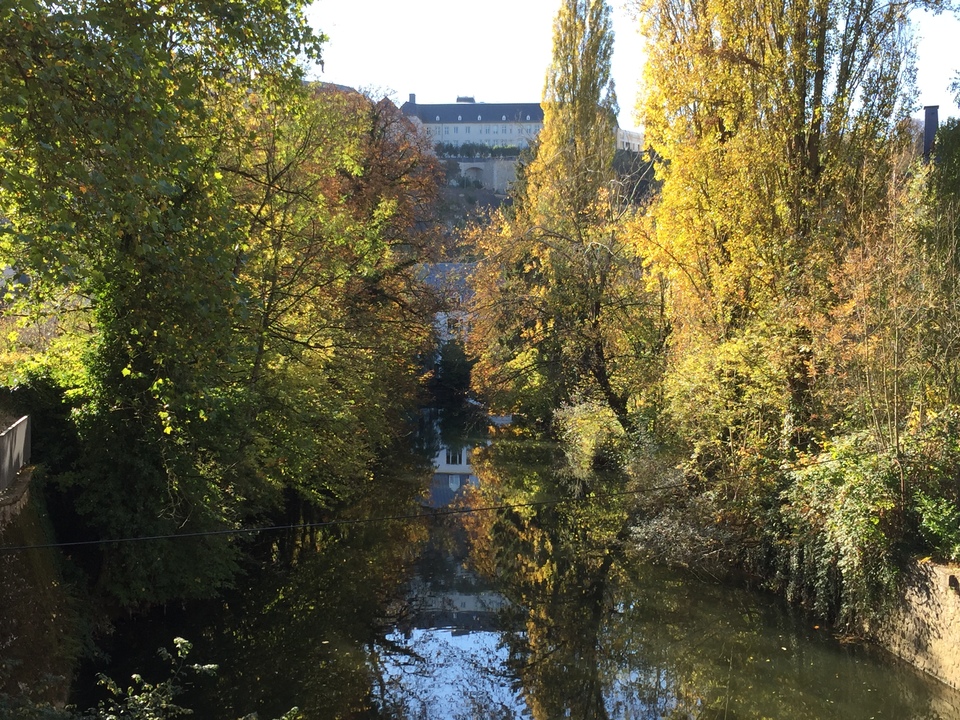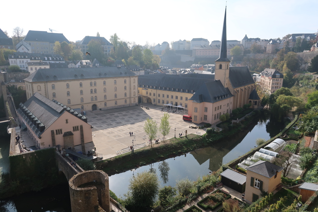 Gleich anschliessend liegt ein kleines Tal am Ufer der Alzette, wo sich die Abtei Neumünster und die Johanniskirche befindet. Lieblich windet sich das Wasser an den alten Gemäuern, einer enormen Trauerweide und einer steinernen Rundbrücke vorbei. Wirklich hübsch!